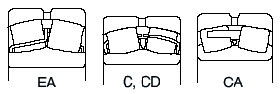 調(diào)心滾子軸承,如圖所示,有高負(fù)荷容量設(shè)計(jì)的EA型,C型,CD型,CA型。設(shè)計(jì)上, EA型,C型,CD型 為沖壓保持架, CA型為銅合金車制保持架。EA 型軸承具有高負(fù)荷容量,低轉(zhuǎn)矩的特長。